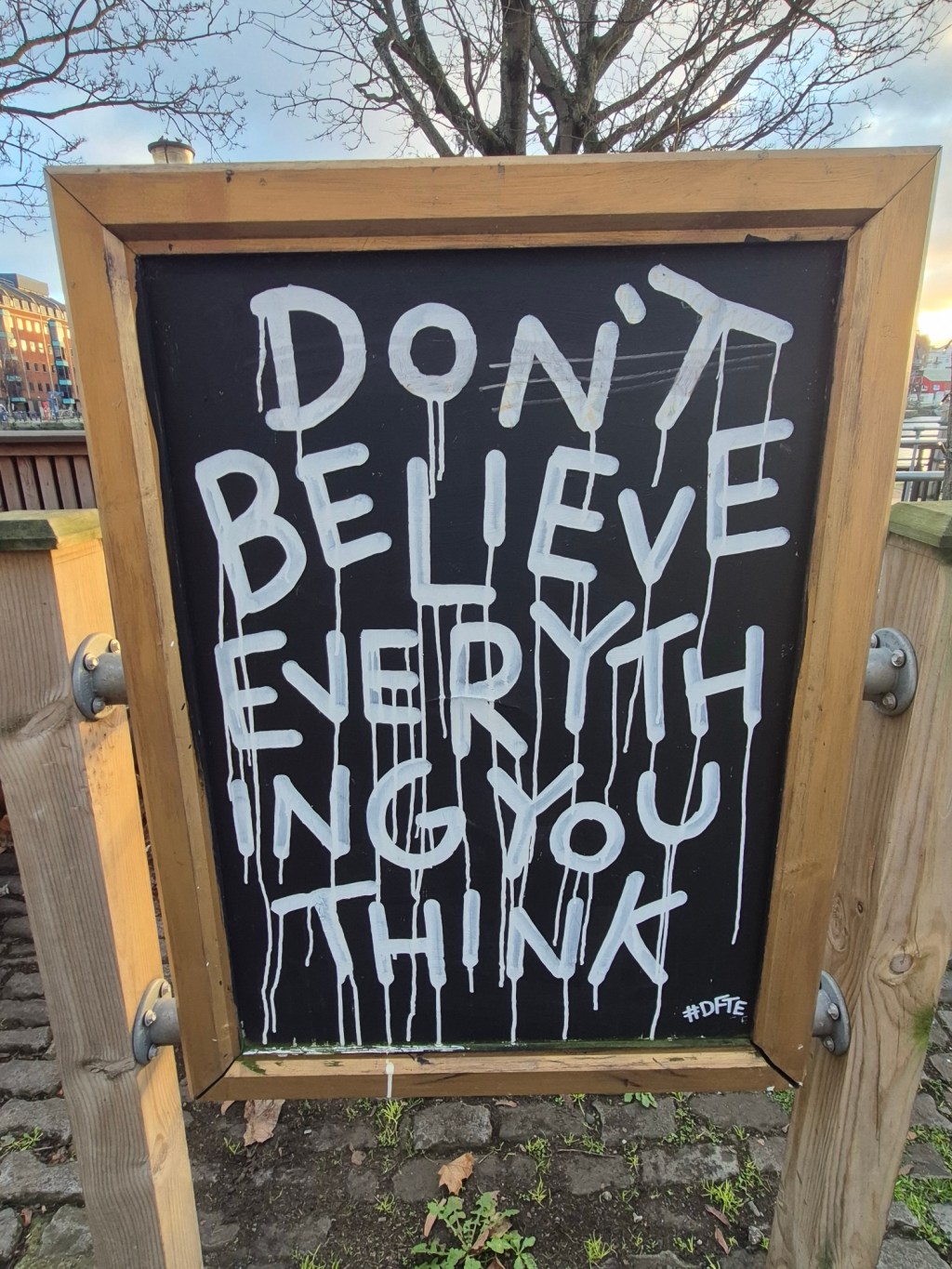 Pero como dice la foto de este texto, que estaba escrita en un bar de Bristol, no creas todo lo que piensas. Lo que piensas no es tuyo, está en la programación del juego y tu Yo simplemente lo sintoniza. Lo que piensas no es tuyo, lo que sientes no es tuyo, lo que haces no eres tú. Es tu avatar, como ese de Pandora en la película de ayer. Tú eres lo que queda cuando dejas de pensar, que es lo que sucede cuando meditas o escribes o haces manualidades o música o pintas o programas o haces Excel o dominadas o punto de cruz. Tú eres el que eres cuando estás creando, no cuando estás pensando. Y es ahí, cuando creas, cuando reconoces que el amor es lo que une todo.